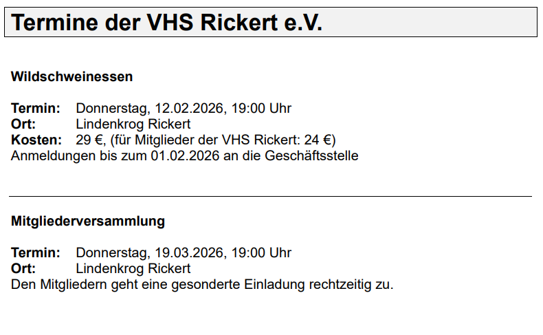 Bitte beachten Sie – ab sofort – unsere neue Mailadresse: info@vhs-rickert.de